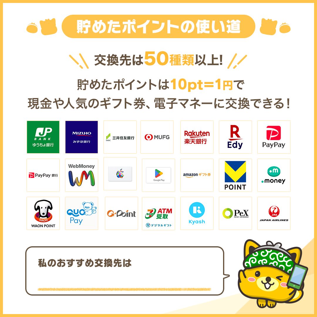 ポイントインカムのポイント交換先おすすめはコレ!後輩ちゃんが交換先一覧を徹底解説!