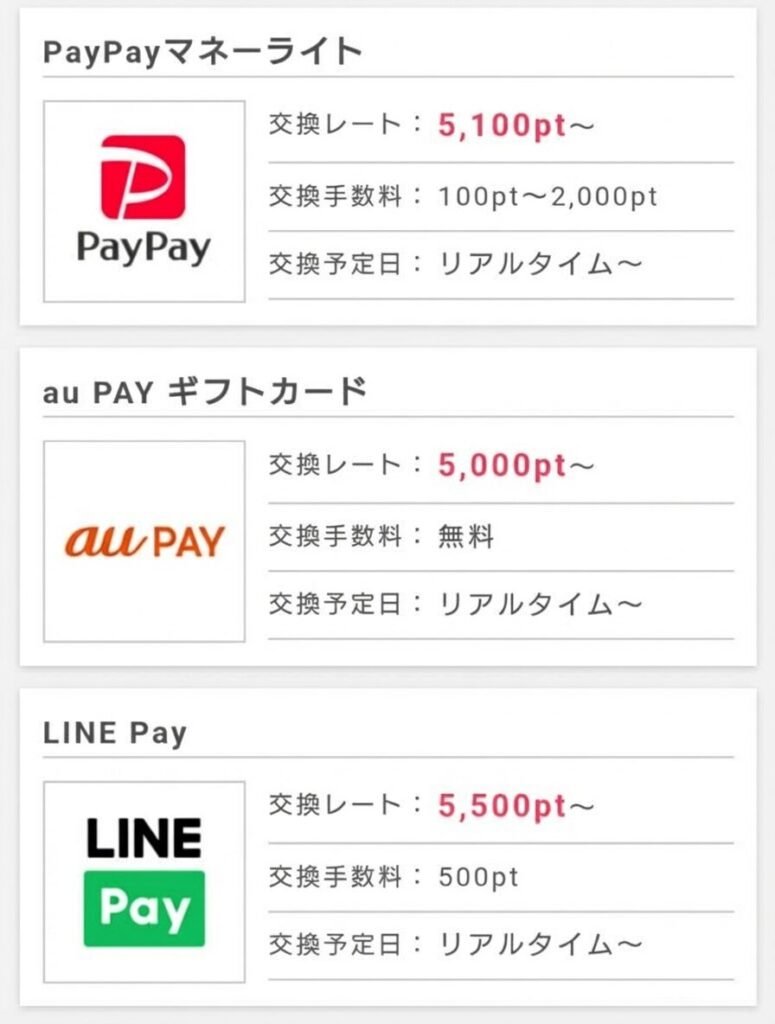 - 全ポイント交換先の一覧(交換レート・手数料・交換予定日つき)