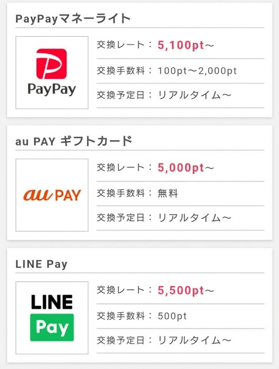 - 等価以上の交換レートが多い(2〜5%お得になるものも)