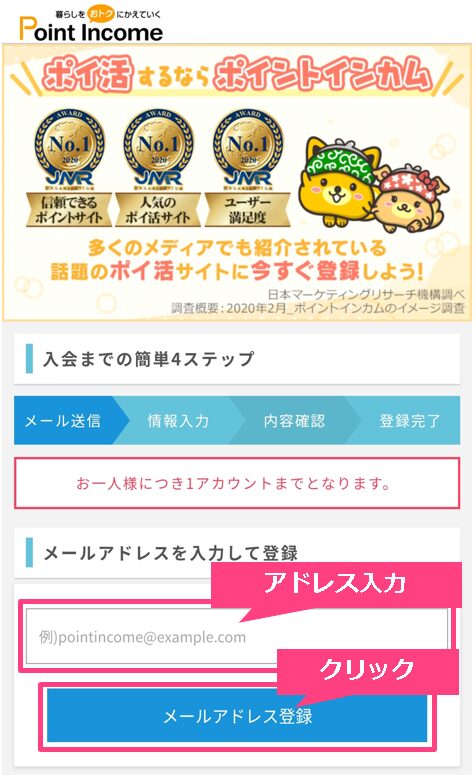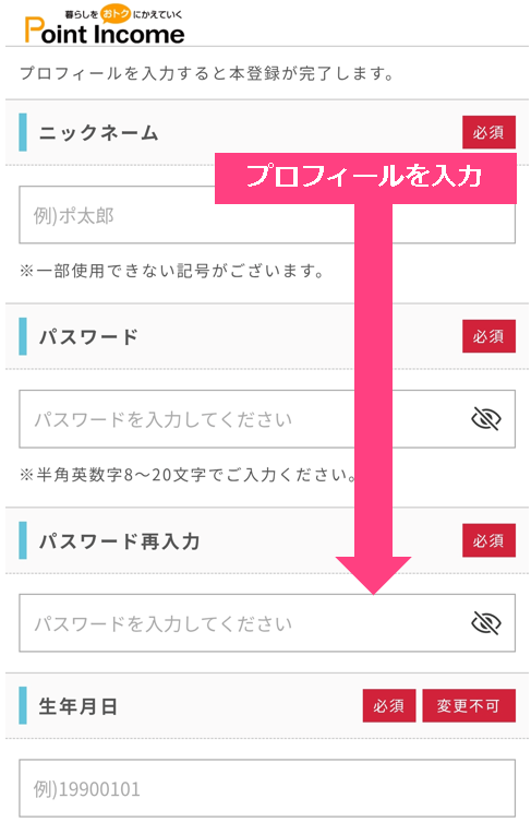 スマホ設定が整ったら、いよいよポイントインカムへの登録に進みましょう。