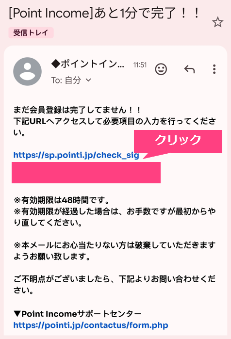 STEP3:届いたメールに記載のURLをクリックする