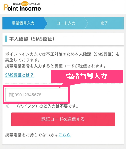 Step5:SMS認証を行い登録完了 → 1,000pt(100円分)確定